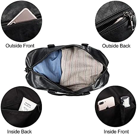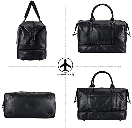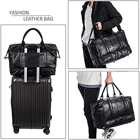 Leather Travel Bag with Shoe Pouch,Weekender Overnight Bag Waterproof Large Carry On Travel Tote Duffel Bag