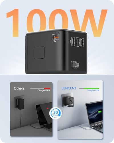【100W USB-C Fast Charging】This 100W travel adapter has the power you need to fast charge your phone, tablet, and USB-C notebook from a single travel charger. The USB-C port on the side can reach up to 100W, it takes less than 2 hours to fully charge your MacBook Air M2, bringing you the most efficient and fastest charging experience. With smart charging technology,this power adapter delivers an optimized power output for extended battery health.