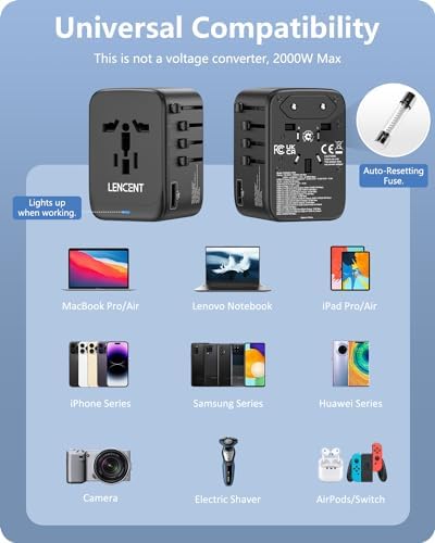 【Wide Compatibility】This international plug adapter supports USB PD 3.0, QC4.0 and PPS protocols. It provides flawless compatibility and optimized charging speeds for all USB powered devices like iPhone 15/15 pro/14/14 Pro/14 Pro Max/14 Plus/iPhone 13/13 Pro/13 Pro Max, iPad Pro/iPad Air, MacBook Pro/Macbook Air, Samsung Galaxy S22 Ultra/S21 Ultra Series, bluetooth earphone, e-reader, portable speakers and other device.