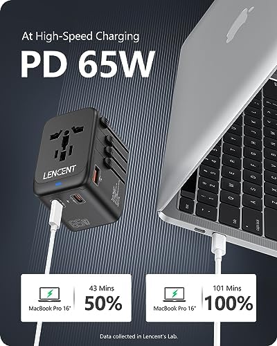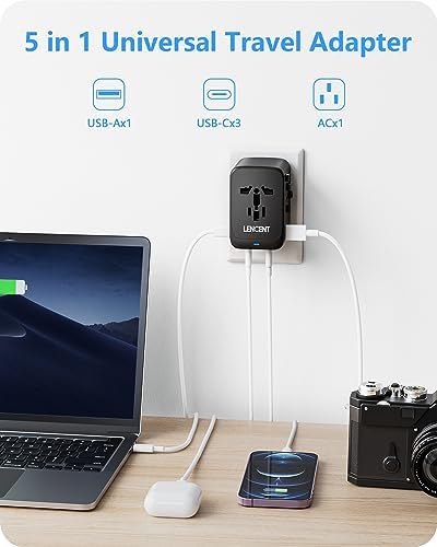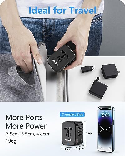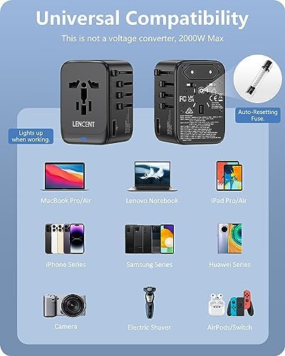 【Auto-Resetting Fuse & GaN III Technology】GaN Pro tech makes our latest travel adapter smaller without a drop of power, and provides better low-temperature fast charging experience. Equipped with an automatic recovery fuse, it can automatically recover when short circuit or overload occurs. The LENCENT travel adapter with 1 USB ports & 3 Type C ports is capable of intelligently identifying connected devices and detecting and delivering optimum charging current, ensuring fast and safe charging