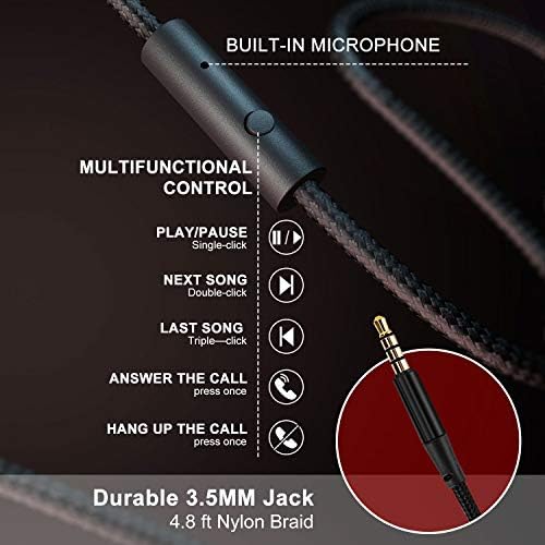 【Durable and folding design】These headphones with microphone in bright colors are built meticulously with strong and sturdy plastic for long-lasting resilience and durability. Premium 1.5m nylon braiding cord doesn’t tangle or kink, suitable for adults and childrens . Lightweight and foldable design make these wired headphones easy to put into your package and take along anywhere.