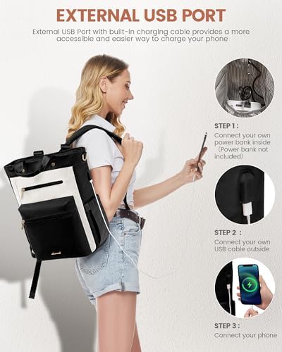 LOVEVOOK Laptop Backpack for Women 15.6 Inch Laptop Bag with USB Port Wide Open Work Tote Bag Convertible Casual Daypack Business Computer Travel Backpack Purse Teacher Nurse Bag