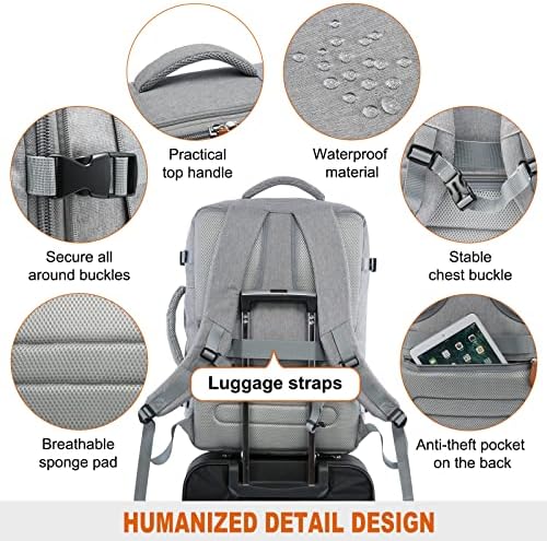 [FOR TRAVEL] This carry on backpack is flight approved, you can travel anywhere you want, it has a side handle, it can be turned into a suitcase backpack, and there is a luggage strap on the back, which can be placed on the luggage, it’s very convenient to carry. Breathable sponge mesh design on the backside and shoulder straps help for the air convection, ventilation, and heat elimination and help relieve the stress from your shoulder. It’s a nice personal item backpack