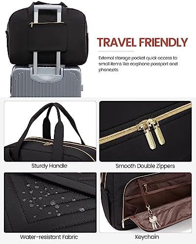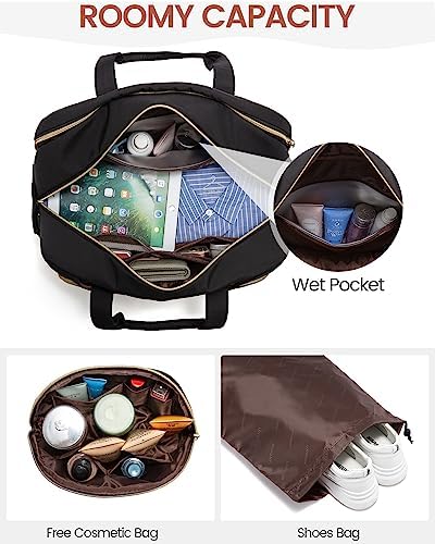 TRAVEL FRIENDLY ☛Independent shoe bag: Perfectly separate your dirty shoes from clean clothes.1 waterproof pocket: Separate dry and wet items, can put toiletries, and towels. Front zipper pocket for easy access to your passports and mobile phones. Dual carrying handles, a luggage trolley sleeve, and a removable padded shoulder strap offer carrying options, for hands-free mobility when you travel.