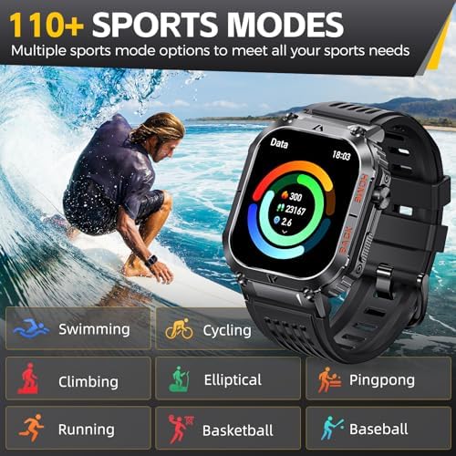 【Bluetooth Calls & Notifications】- LaNikar smart watch with text and call is equipped with a 5.2 Bluetooth chip and high-quality speakers, compatible with Android 6.0 and ios 10.0 and above phones, whether you’re in a meeting or on the move, you can answer/reject calls with one tap on your rugged smartwatch and communicate more freely. At the same time, you can keep up to date with messages and notifications(Facebook, WhatsApp, Twitter, etc), and the information you need will be available first!