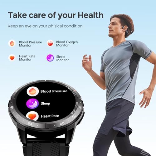 [AMOLED Display & Long Battery Life] The men’s smart watch with 1.43-inch HD AMOLED touch screen that brings you a clearer visual and smoother operation experience, and 6 levels of brightness options allow you to easily read information in the sun or dark, and this smartwatch has a built-in large capacity battery, which can be used for up to 15 days and has a long standby time of about 35 days, can be fully charged in 2 hours.