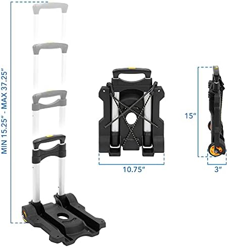 Lightweight and Foldable: This Folding hand truck folds up to a manageable size great for storage and portability. Its lightweight, weighing only 4lbs and measures 17.5” x 9” when folded.