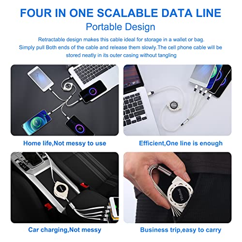 【Practical and essential charging cable】The retractable 4-in-1 multi-USB cable can provide a one-stop portable charging solution, and you don’t need to carry any other cables when you are at home/car/office or on the go.