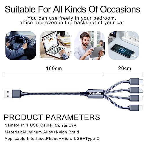 【🐣𝐂𝐡𝐚𝐫𝐠𝐢𝐧𝐠 𝐅𝐚𝐬𝐭】Adopted pure copper wire and smart chip to lower resistance. This multi charging cable ensures safe charging and protects your battery. The maximum total output current can be up to 3.0A (total, not each end), charge faster than most 4 in 1 cables and work better for tablets and Pad charge devices.