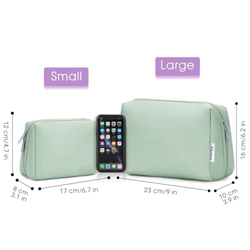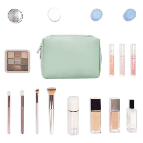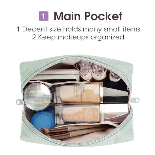 ✅ MULTIPLE STORAGE COMPARTMENTS – One main compartment with 5 small pockets neatly organizes your makeup. Main pocket in decent size holds many small items. Left side pockets hold your concealer or lipsticks, while right side easily holds your travel mirror or travel brushes set.