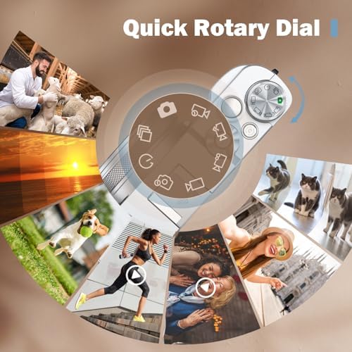 👍【Optical Viewfinder & Multi-function Dial】The optical viewfinder of digital camera helps you frame your shots more accurately and eliminates glare on the screen when shooting in bright sunlight. The top dial easily switches between Photo, Multi-shot, Timer, Video, Timelapse Photo/Video, Loop Recording, Slow Motion modes, which makes this camera surprisingly easy and fast to change modes, ensuring a smooth shooting experience.