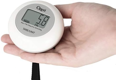 Avoid all last-minute stress before travel, and never go scavenging for batteries again with the new Ozeri Twist-and-Go Kinetic Kitchen and Luggage Scale. Requiring just a single rotational twist, the Twist-and-Go converts kinetic energy into a digital charge so that you can accurately weigh everything from your groceries to your luggage. A simple 120 degree twist of the bezel provides over 3 minutes of usage time, and a 180 degree twist over 5 minutes. With a weight capacity up to 77 lbs (35 kg) and a graduation of 0. 1 lbs (0. 05 kg), the compact and battery-free Ozeri Twist-and-Go Kinetic Kitchen and Luggage Scale is a traveler’s best friend, saving you costly overweight charges and the hassles of last-minute changes.   With its ergonomic form factor, the Ozeri Twist-and-Go Kinetic Luggage Scale naturally contours to the inside of your hand, allowing heavier luggage to be weighed with ease.   A handy Tare button makes the Ozeri Twist-and-Go equally adept at weighing groceries, kitchen items, and calculating postage, while a convenient Unit button easily switches between pounds (lbs) and kilograms (kg).   The Ozeri Twist-and-Go Kinetic Kitchen and Luggage Scale is backed by Ozeri’s No-Hassle , with your satisfaction .