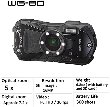 Ricoh WG-80 Black Waterproof Digital Camera Shockproof Freezeproof Crushproof Microscope Mode