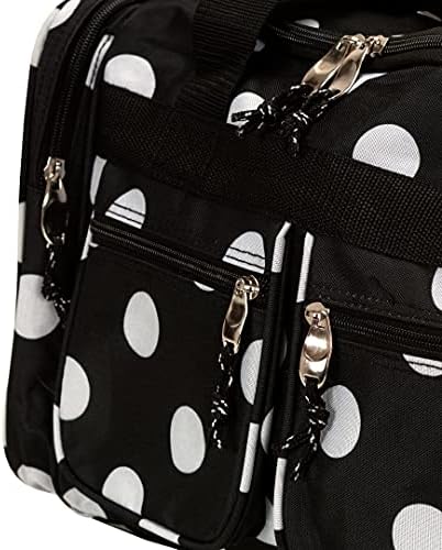 Compliment your rockland luggage collection with this stylish carry-on flight tote bag. this fashionable polyester fabric duffel will turn heads anywhere your travel takes you. bag is constructed of heavy-duty 600 denier polyester. u-top opening provides easy access to main zipper secured compartment. two front zipper secured compartments adjustable ergonomic shoulder strap heavy duty 600 denier polyester measures 19”l x 10”w x 8.5”h