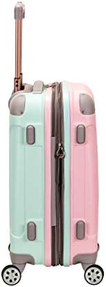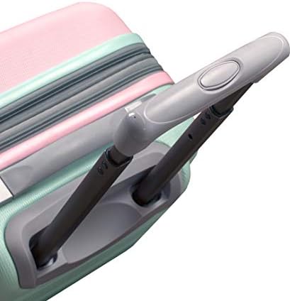 This carryon is made of abs. The major benefits of this material – it is extremely lightweight, it is durable, and protects the contents of your luggage. Four multi directional spinner wheels rotate 360 degrees for easy maneuverability. This luggage allows you to pack more while avoiding the excess weight surcharges imposed by most airlines. Multi-directional spinner wheels for easy maneuverability. Modern internal chrome telescoping handle with push button handle. Interior mesh and zip pocket and elastic pocket. Measures 20 inchx13 inchx9 inch and weighs 7.5 lbs. Wheel design may vary between black and silver wheels