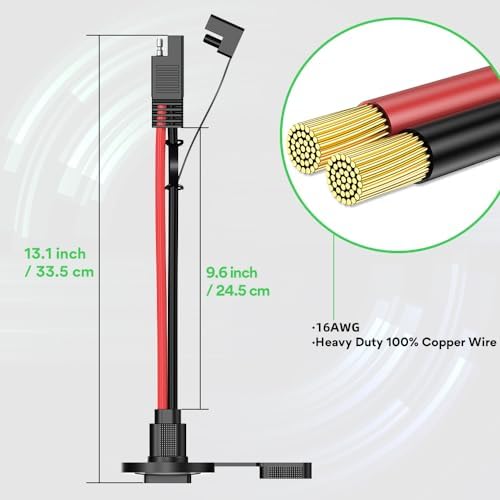 【Package List】2 SAE connector to socket port cable with protective caps. Cable Length:13.1 inches/1.1FT. 8 flat stainless steel screws.