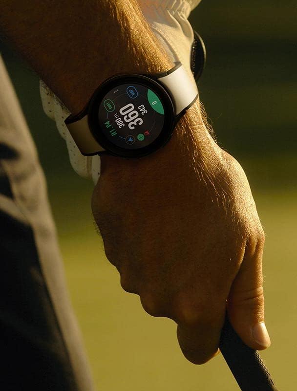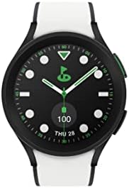 Meet with the Galaxy Watch5 Pro Golf Edition smart watch. Designed to withstand the toughest hazards and fashion critics, the titanium Watch5 Pro golf themed design sports a matching two-tone band, exclusive watch face, and stylish green home button — designed with exclusive colors made for the course. With Galaxy Watch5 Pro Golf Edition, it’s always tee time. Nothing stands in your way with new premium golf features.* The pin direction guide shows you how to address the pin like a pro, club distance guide gives you accurate shot distance data, while the voice guide walks you through your hole with distance to the pin, pin location, and more.** Track your shots, score, see the course, and take your game to the next level. *Requires Galaxy smartphone with Android 8.0 or later, 1.5GB RAM or more. **2GPS accuracy may be affected by weather, atmosphere and other obstructions such as buildings and tall trees. ***Requires the latest version of the Samsung Health app (version 6.22 or later). For sleep pattern results, user must wear watch while they sleep for at least 7 nights and complete a survey. ****The Samsung BIA is a body analyzer that uses bioelectrical impedance analysis (BIA) technology to track body composition based on weight, body fat, body mass index (BMI), skeletal muscle, body water, and basal metabolic rate (BMR) measurements. It is not intended to specifically diagnose or treat a medical condition. Requires the latest version of the Samsung Health app (version 6.22 or later). *****The heart rate software functions are not intended for use in the diagnosis of disease or other conditions, or in the cure, mitigation, treatment or prevention of disease. Requires Galaxy smartphone with Android 8.0 or later, 1.5GB RAM or more and the latest version of the Samsung Health Monitor app (available only at the Samsung Galaxy app store). ******Water resistant up to 50 meters per ISO standard 22810:2010. Not intended for scuba diving. Avoid excessive, sudden temperature changes and high-velocity activities. Rinse in fresh water / dry after use in seawater or chlorinated water. Consistent with IPX8 rating, water resistant in up to 5 feet of water for up to 30 minutes. Rinse residue / dry after wet. Requires the latest version of the Samsung Health app (version 6.22 or later). *******As compared to all watches in Galaxy Watch4 Series.