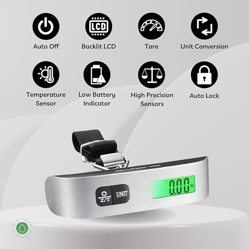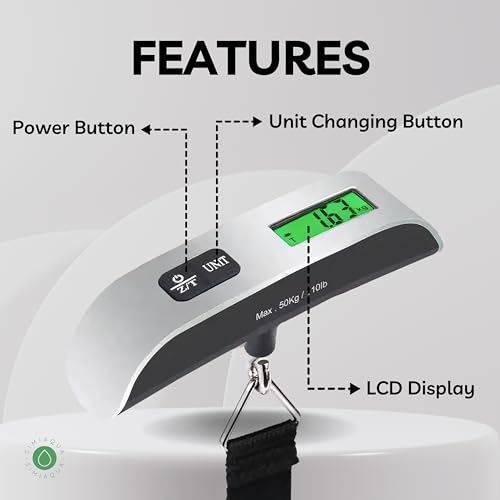 Travel with confidence using the Portable Digital Best Luggage Scale. With a robust 110lbs capacity and precise 0.1-pound graduation, this digital scale accurately measures your luggage, suitcase, and bags. The backlight LCD display ensures easy reading in dim light, while the data lock function allows you to leisurely check results after luggage stabilization. The auto-off feature conserves battery energy, complemented by low battery and overload indicators. Enjoy hassle-free weighing with the accurate tare function and date hold feature, making it versatile for travel, postal, home, and outdoor use. The scale, complete with a CR2032 battery, is ready to use straight out of the box. An ideal gift for travelers, it’s designed to save you from unexpected overweight bag fees, helping you prepare for your upcoming journey.