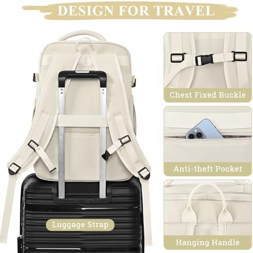 【Designed for Travel】:The shoulder belt of the backpack uses mesh breathable fabric to reduce shoulder pressure, the adjustable chest brings you more comfortable wearing experience, the luggage belt design allows you to travel easily, the anti-theft pocket on the back is designed to put important items, and the charging port design allows you to charge while walking, giving you an excellent travel experience.