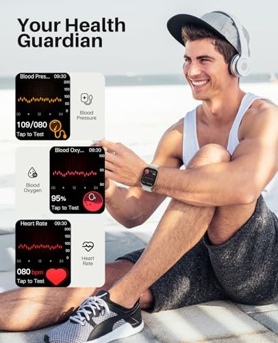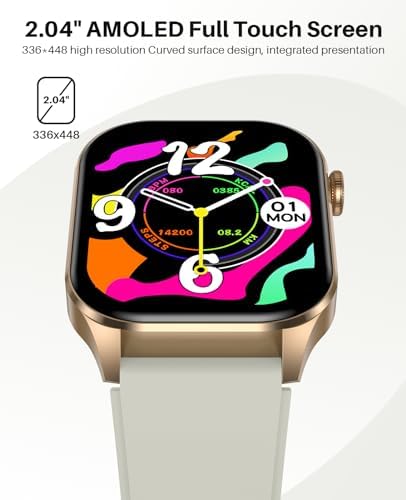 Smart Watch for Men Women, Infrared True Blood Oxygen Monitor, 2.04-inch AMOLED Display, Heart Rate Blood Pressure Sleep, IP68 Waterproof Fitness Tracker, Compatible with Android and iOS Beige