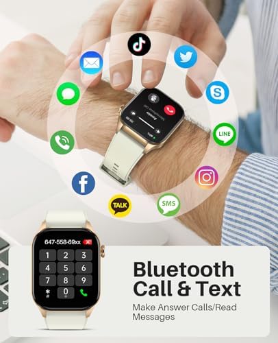 【Bluetooth Calling/Message Notification】This smartwatch is equipped with a built-in microphone and speaker, making it very easy to use with its one-touch Bluetooth connection feature. You can easily use this smartwatch to answer/make calls, store contacts, view call logs, and receive notifications and messages from various apps on your phone (such as Facebook, Messenger, Instagram, Gmail, Whatsapp, Twitter, Snapchat, etc.) through the AI voice assistant.