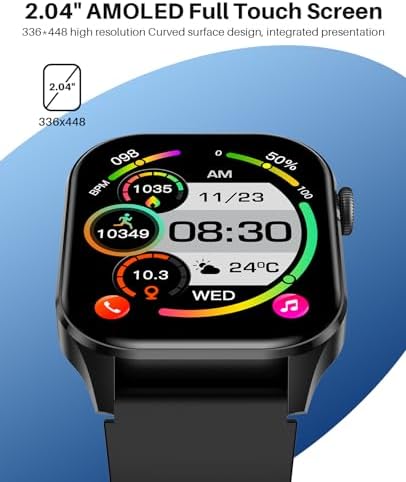 Smart Watch for Men Women, infrared true Blood Oxygen Monitor, 2.04-inch AMOLED Display, Heart rate Blood Pressure sleep Monitor, IP68 Waterproof Fitness Tracker, Compatible with Android and iOS
