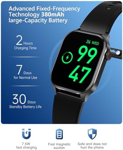 【Battery Life and Compatibility】The T98 smartwatch features a newly upgraded ultra-low power 7013A chip and a robust 380mAh battery, which can last approximately 7 days on a single 2 hour charge for daily use and up to 30 days on standby, providing you with a more reliable and exciting experience. Additionally, the watch has a screen saver function, making your user experience more intelligent and convenient. Compatible with Android 5.0/iOS 10.0 or higher versions.