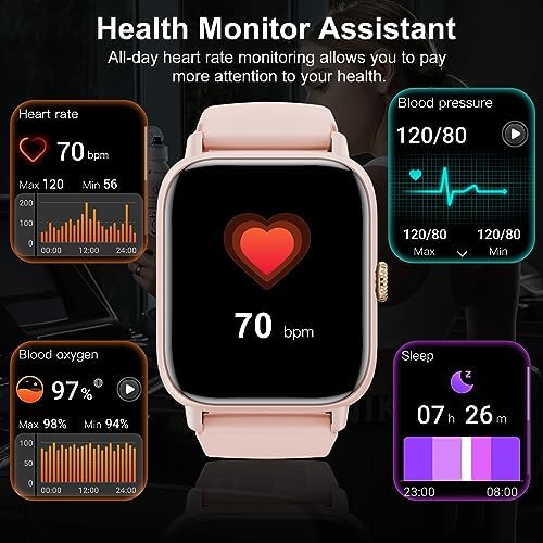 【All-day Health Monitoring Fitness Watch】Our activity fitness tracker uses advanced sensor chips to monitor your heart rate, blood oxygen, pressure, and other health conditions throughout the day. It also provides women’s menstrual reminders, breathing training, sleep monitoring, and comprehensive sleep quality analysis. Provides you with personalized insights to help you better manage your health and maintain a healthy lifestyle.