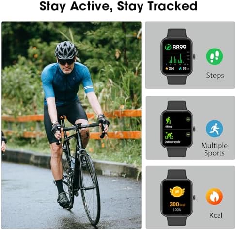 Multiple Sports Modes Tracking: Our smartwatch supports multiple sports modes like running, cycling, and swimming. It monitors calories, steps, distance, and activity time, providing detailed data for a comprehensive performance overview.