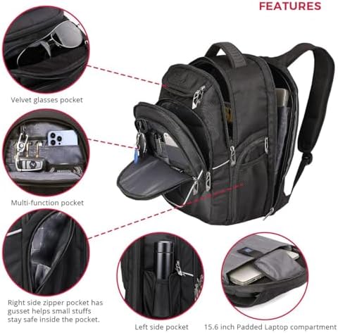 TSA-FRIENDLY & MULTIPURPOSE: At checkpoint it unfolds freely to 90-180 degrees, allowing for quick & efficient navigation quickly through airport security. Exclusively designed for AIRPLANE TRAVEL. Serves as an everyday backpack,spacious college backpack for men, professional backpacks for laptop. Occasional international travel, outdoor camping backpack, hiking backpack with a large capacity with USB charging capability.
