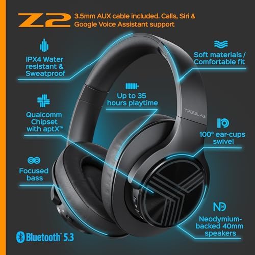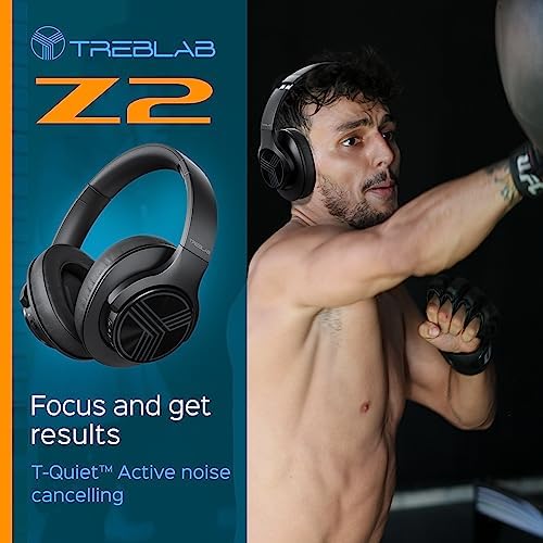 T-Quiet Active Noise Cancelling – TREBLAB Z2 wireless over the ear headphones come with T-Quiet active noise-canceling technology. Block out the irritating external sounds and focus on your music and workout!