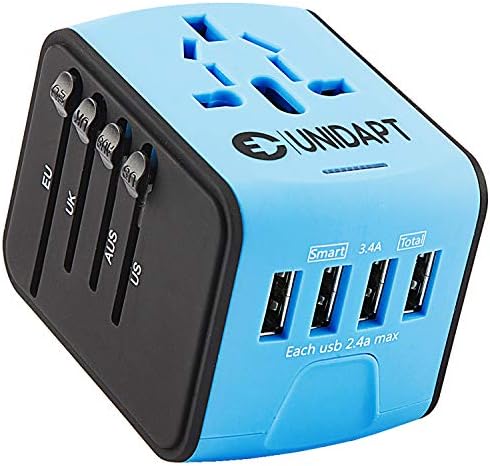 POWER & SAFETY: 4 AC wall power sockets- 6 Amp max (660W max. at 110V, 1380W max. at 230V), AC 100-240V-max 6A output; 4-Port USB charger 2.4A 5V DC max; 2400mA. Unidapt adapters are small, safe and Perfect for Travel.