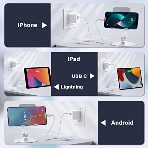 ⚡【Get rid of messy data cables】Just 1 iPhone charger block and 1 USB-C to Lightning charging cable can meet the charging needs of IOS and USB-C devices. ✘Note: Two ports do not support charging at the same time.